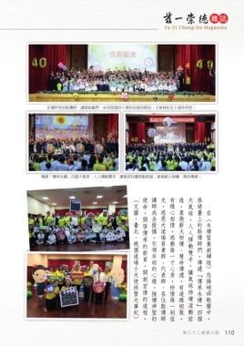 (文圖:臺北、桃園道場小天使班暨大事紀) 使命,開啟傳承的新頁,開創宏偉的道程。 講師成全提攜,引領年幼的心燈,接續神聖的 光,感恩大道場負責群、代表群、各位點傳師 有緣心相惜,感動每一寸心房,珍惜每一刻佳 進,象徵薪火相續、慧命傳遞,有道緣相聚, 大氣球,人人揮動雙手,讓氣球持續滾動前 恭請臺上的點傳師們,傳遞「傳承永續」四個