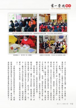 港濟慈佛院前來嘉義慈善佛院協助搭設營火, 彰興區濟慈佛院青少年界四位前賢,專程從鹿 力。 實作,提升生活技能,也培養解決問題的能 卡,讓孩子們依序挑戰不同關卡,透過遊戲和 行所設計的四個與日常生活息息相關的主題關 隊特色課程「學習列車」,配合食、衣、住、 動進行靜心,讓身心得到放鬆,隨後開始了營 體會父母的辛勞,進而更加感恩惜福。 們也希望可以透過實作,培養孩子的獨立性, 子來說美食 每一步驟,都讓大人們看得膽戰心驚,但對孩 菜,用不熟練的手法翻炒著青菜,雖然過程中 模有樣,然而大多數的孩子則是小心翼翼的切 部分的孩子拿起菜刀、鍋鏟時,就像大廚般有 菜「炒高麗菜」與「玉米起司豆包蛋餅」,少 僅訓練專注力,也讓孩子們體驗手作的樂趣。 手工,將植物葉片製作成獨一無二的書籤,不