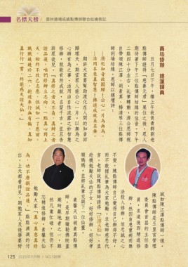 真行行一貫,終能感天證天仙。 戰戰兢兢於二六,抱道奉行無有偏。真知 天。始終不改己志愿,恆誠如一了愿前。 證品蓮。咱們修辦立志向,一點真心對上 訴眾徒兒,「 修辦,就能有所成就,名留千古。並且告 心辦有為之事,活用由自性流露之妙智慧 歸理天,期望眾人能公心一片,以無為之 師到場結緣。恩師以鎮壇詩: 自帶領陳江澤、胡素真、楊清琴三位點傳 二點四十分左右,乩筆轉動,濟公恩師親 期待著下午三位點傳師結緣的佳音。下午 點傳師證得「慈善元君」果位之後,眾人 真心修辦