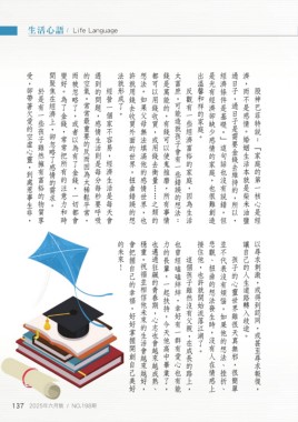 受,卻帶著欠愛的空虛心靈,到處惹事生非, 間聚焦在經濟上,卻忽略了感情的需求。 變好。為了金錢,常常把所有的注意力和時 而被忽略了,或者以為有了金錢,一切都會 的空氣。常常最重要的反而因為太稀鬆平常, 遇到的問題,感情生活則是每分每秒要呼吸 法就形成了。 許就用錢去收買外面的世界,扭曲錯誤的想 想法。如果父母無法填滿他的感情世界,也 都可以用錢收買,或用錢去衡量……之類的 錢是萬能的,有錢可以使鬼推磨,所有事情 太富庶,可能造就孩子會有一些錯誤的想法: 出溫馨和祥的家庭。 是光有經濟卻缺少感情的家庭,也很難創造 經濟條件是基礎。」這句話也沒有說錯,但 過日子,過日子是需要金錢去維持的,所以, 濟,而不是感情。婚姻生活本就是柴米油鹽