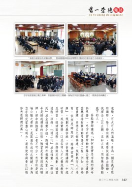 答天恩師德於萬一。 忠字班定當盡心竭力,肩負使命與責任以報 場公職之骨幹,是區運作成功之關鍵。身為 神;使命與擔當,二者不可分。忠字班是道 命是接起傳承的任務,擔當是負責到底的精 民」成全推動小組。點傳師亦勉勵大家:使 道務、班務、「道二代」成全推動、「新住 及研習。提請區道務、班務擬定規劃,擔當 研習、成全實務,以及各項人才之養成教育 庫」。規劃忠義字班、法會傳題講師、十組 育,依照恩師慈訓,將佛堂變成「人才 堂重建、崇德文化館興建,規劃執行人才培 雲林道場相關活動及各項工程,例如:崇修 與承擔」,忠字班需帶動所屬公壇全力護持 底下的人。 從理念上以正聽、正知正見,用智慧去帶動 的講師,除了修內德,還要從道務去推動, 道場,可大可久的基礎。身為一個忠義字班