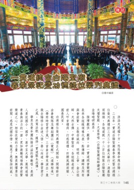 學界及青年團熱情洋溢的帶動唱,表演 功德祿位榮列典禮正式開始,開場節目 接續獻供、獻香,由一貫道總會簡理事 浩浩天恩耀十方,悠悠慧命應白陽;二