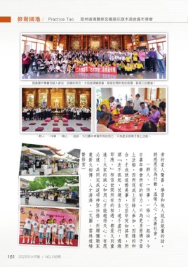 贊修宮) 業薪火相傳、人才濟濟。(文圖:雲林道場 必達,共同完成這項神聖任務,祈願彌勒家 逢!大家的誠心和用心才能邀得天心,有愿 即應。」相信世間所有的相遇,都是久別重 謂「法不孤起,仗境方生;道不虛行,遇緣 合,才成就這樁美事,它並非突如其來,所 上法船,因而促成上百餘人參加,因緣的和 日嘉年華會所有的努力,只為更多原佛子登 將感恩化為行動,溫暖人心,友善社會。 旁的家人驚喜,學習和他人說正能量的話,