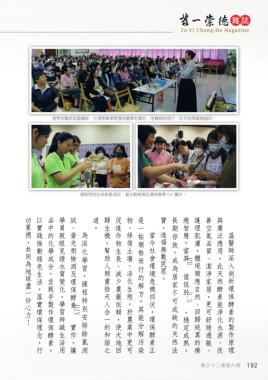 為深化學習,課程特別安排餘氯測 當今社會環境危機四伏,環保酵素正 溫醫師深入剖析環保酵素的製作原理