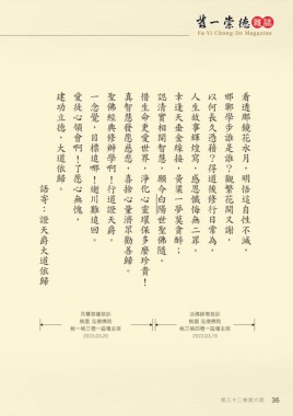 建功立德,大道依歸。 愛徒心領會啊!了愿心無愧, 一念覺,目標追哪!逝川難追回。 聖佛經典修辦學啊!行道證天爵。 真智慧發愿慈悲,喜捨心量濟眾勸善歸。 惜生命更愛世界,淨化心靈環保多麼珍貴! 認清實相開智慧,願今 幸逢天垂金線接,黃粱一夢莫貪醉; 人生故事輝煌寫,感恩懺悔無二罪。 以何長久憑藉?得道後修行日常為, 邯鄲學步誰是誰?觀繁花開又謝, 看透那鏡花水月,明悟這自性不滅,