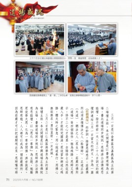 因為莊嚴才可以把道顯現出來。恩師囑咐將  恩師慈勉,人人都可以成為一個莊嚴佛所,  眾徒發大愿,化為一尊世間佛,濟世救眾。  慈悲臨壇,以「愿化一尊佛」為主題,勉勵  為主場,臺南道場同步視訊。恩師濟公活佛  場壇主班,本次開壇是以中興道場正承佛院  無欲無求,勇往直前,一片赤誠。  勝,體天時之緊急,用心抱道奉行,用佛心  嚴入手,才能終究圓滿。眾徒當知辦道之殊  示,修不二之心才是真,白陽修士必然從莊  (道場)等四個條件,極為殊勝。恩師又慈  (大道)、聽法之人(眾生)、莊嚴的佛所  所必須具備傳法之人(點傳師)、正道正法  〈  壇訓連結三月一日當天的訓文,合為一篇  臨壇,指示將前一天二月二十八日訓文的鎮  場,臺北道場同步視訊。恩師濟公活佛慈悲  二場壇主班,本次開壇是以臺南道場為主