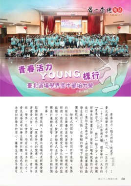 老當初對學界的用心,讓學生有這些平臺可 看見道場高中部學生精神抖擻,很感恩前人 班、學界、社會界,培育出非常多的人才。 著重責大任,從讀經班、小天使班、青少年 點傳師慈悲:「隨著時代的變遷,道場肩負 序幕。 體進行運動員宣誓,正式將培力營活動拉開 臨關心致意,接著由始業式主持人帶領著全 師德,感恩前人慈悲關愛及各位點傳師的蒞 的隊伍在舞臺前高喊著隊呼,一同禮敬天恩 團隊默契。 學生進行互動,在隊輔的帶領下培養良好的 進行,集結各區高中部,透過分組競賽讓各區 師學長姐策畫安排,營隊以趣味競賽的方式 「青春活力 二、十三日,在崇德大樓 臺北道場學界高中部,於二