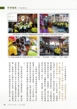 認識崇修堂,從早期開荒歷經各種官考,到 事。點傳師以生動的方式說明,帶領後學們 及最敬愛的前人老不休息菩薩開荒早期的故 修堂從後天鸞堂到先天大廟的發展歷程,以 心。 雲林學界柳人尹點傳師以及講師前賢們的用 接洽到探訪的各種細節,我們都濃烈感受到 輕學子口味的素食餐點,人人大快朵頤。從 日修辦的因緣與資源。 與時代背景,因此一一被感動,更加珍惜今 瞭解道場歷史,也體驗到前人輩弘道的環境 場從無到有的歷程。在闖關中,學子們不僅 事與體驗,去感受開荒的艱辛,並且體悟道 走過前人曾經生活、辦道的地點,更透過故 也要堅強扛起一切。 去。眼前難題,也要面對突破;眼前考驗, 多少阻礙,多少困頓;我感恩,堅持走下